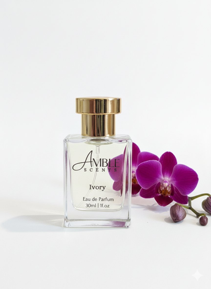 Ivory is an uplifting and joyful fragrance. It opens with sparkling Bergamot and Apple, which blend seamlessly into Jasmine and sweet, indulgent Gourmand notes. The scent is warmly grounded by a comforting base of Musk, Vanilla, Amber, and Sandalwood.
